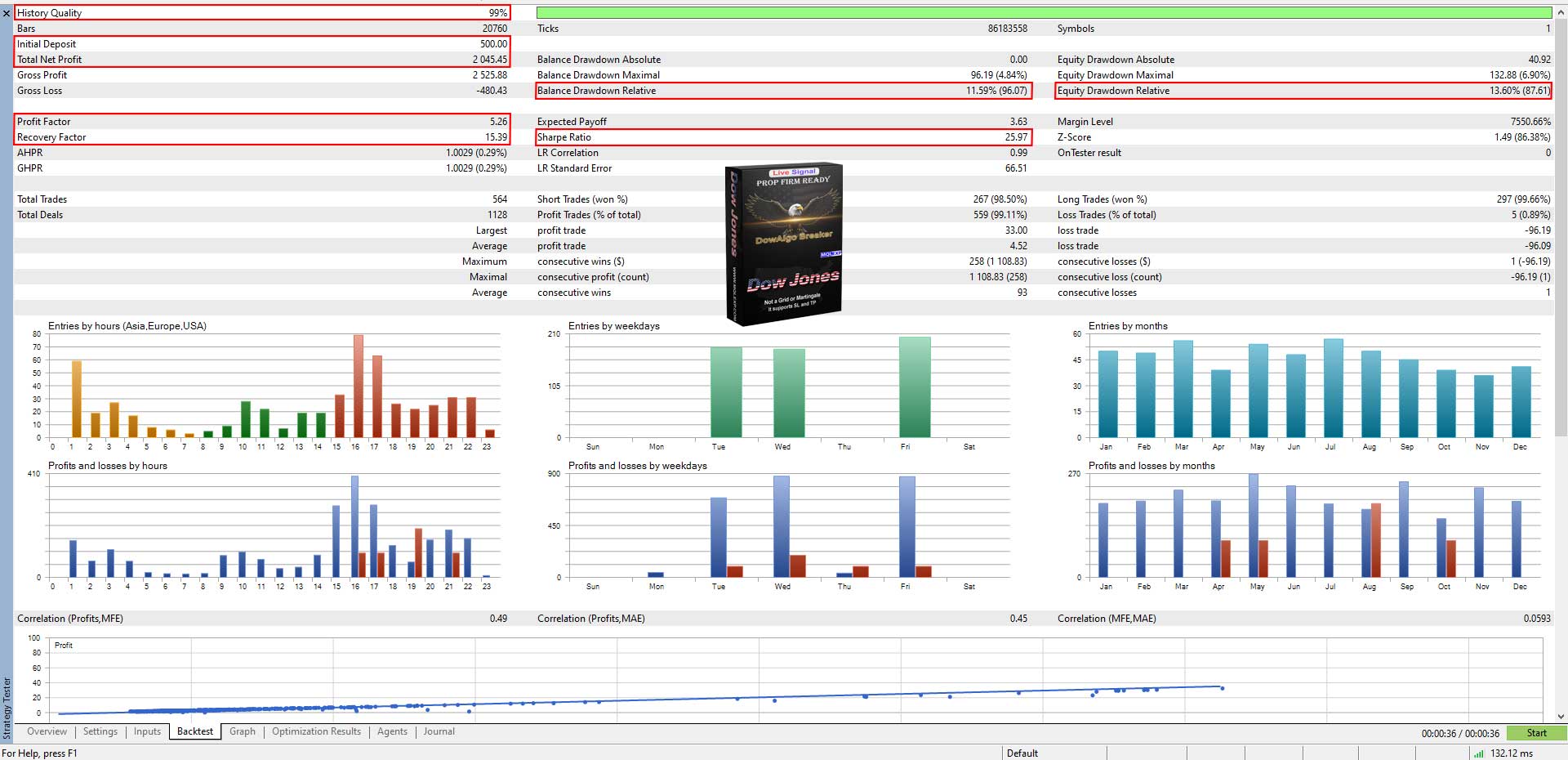 DowAlgo Breaker EA works on Time and Price theory. As the price patterns change, there will be no difference in performance of the EA, which is why this system has long-term stability and performance. The EA finds important and valuable price and executes trades based on them.